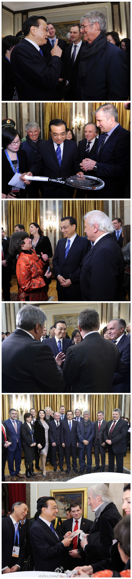 ??? 當(dāng)?shù)貢r(shí)間18日下午,李克強(qiáng)總理在塞爾維亞接受“貝爾格萊德榮譽(yù)市民”證書后,同在場的塞各界知名人士交流。他們既有為人熟知的電影演員、足球教練,也有歌劇表演藝術(shù)家和長期研究中國的漢學(xué)家。總理同他們親切交談,現(xiàn)場氣氛友好熱烈。