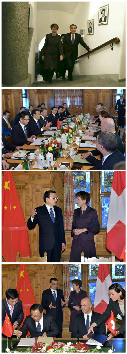 ??? 新華網(wǎng)北京1月22日電 據(jù)新華社“新國(guó)際”微博報(bào)道,當(dāng)?shù)貢r(shí)間21日下午,國(guó)務(wù)院總理李克強(qiáng)同瑞士聯(lián)邦主席索瑪魯加舉行會(huì)談。李克強(qiáng)說(shuō),中方歡迎瑞方參與人民幣國(guó)際化進(jìn)程,支持蘇黎世人民幣離岸市場(chǎng)建設(shè),愿給予瑞士500億元人民幣的合格境外投資者配額,希望瑞方為中資銀行在瑞開設(shè)分行提供便利。