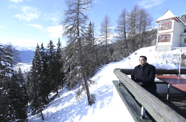 ????上了山頂,才明白咱總理為什么要來(lái)。達(dá)沃斯小鎮(zhèn)地處阿爾卑斯山脈,周圍群山環(huán)抱。海拔1800米的沙茨阿爾卑山頂視野極好,極目遠(yuǎn)眺,藍(lán)天,白云,雪峰,蒼松,周圍靜謐得似乎只剩下積雪掉落的聲音。