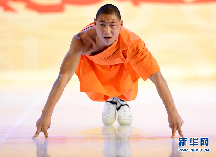 2月4日晚,在烏茲別克斯坦首都塔什干突厥宮,藝術(shù)家在表演中國武術(shù)和舞蹈。新華網(wǎng)記者 沙達提 攝