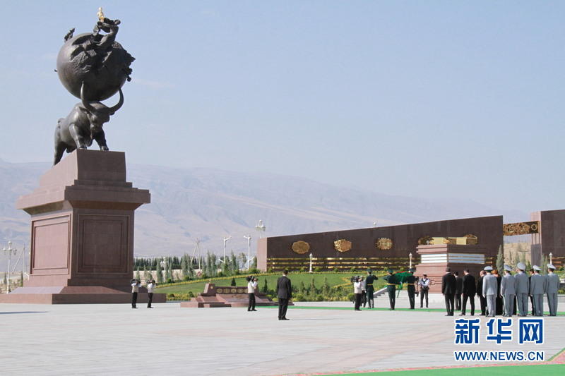 土庫曼斯坦總統(tǒng)和內閣成員向地震紀念碑獻花。(新華網(wǎng)記者 盧敬利 攝)