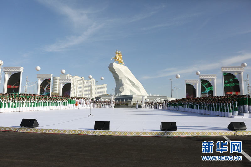 新華網(wǎng)阿什哈巴德5月26日電(記者盧敬利)土庫(kù)曼斯坦總統(tǒng)別爾德穆哈梅多夫金色雕像落成儀式25日在阿什哈巴德舉行,多座路中央雕塑也在當(dāng)日舉行了落成慶典儀式。