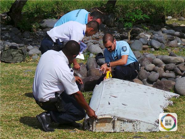 圖為7月29日,在法屬留尼汪島,警察查看一塊飛機(jī)殘骸。 新華/路透