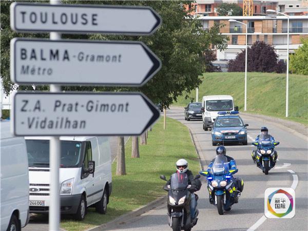 圖為8月1日,在法國圖盧茲近郊,載有疑似馬航MH370航班殘骸的白色貨車駛?cè)牒娇占夹g(shù)分析機(jī)構(gòu)。新華社發(fā)