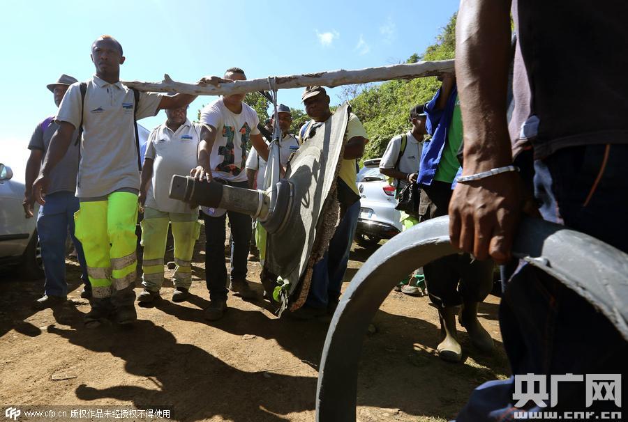 當?shù)貢r間2015年8月11日,法屬留尼汪島,當?shù)厮丫汝牜@得的馬航MH370殘骸。
