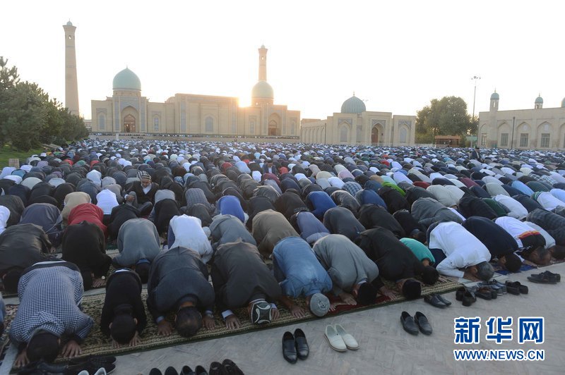 ?。乖拢玻慈?,在烏茲別克斯坦首都塔什干哈斯特·伊瑪姆建筑群清真寺廣場(chǎng),人們參加古爾邦節(jié)禮拜。當(dāng)天,烏茲別克斯坦各地慶祝伊斯蘭教傳統(tǒng)節(jié)日古爾邦節(jié)?!肮艩柊罟?jié)”亦稱“宰牲節(jié)”,是伊斯蘭教三大節(jié)日之一。 新華社記者沙達(dá)提 攝