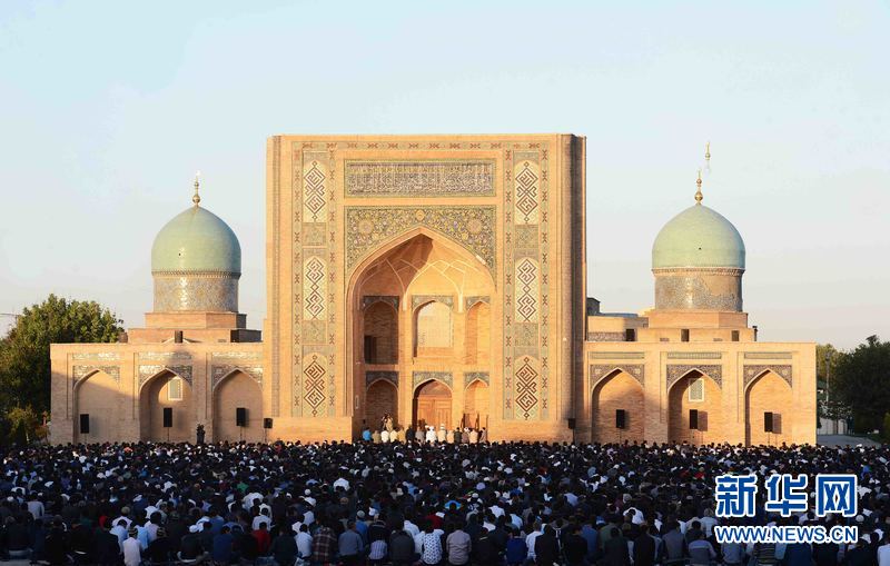 ?。乖拢玻慈?,在烏茲別克斯坦首都塔什干哈斯特·伊瑪姆建筑群清真寺廣場,人們參加古爾邦節(jié)禮拜。當(dāng)天,烏茲別克斯坦各地慶祝伊斯蘭教傳統(tǒng)節(jié)日古爾邦節(jié)?!肮艩柊罟?jié)”亦稱“宰牲節(jié)”,是伊斯蘭教三大節(jié)日之一。 新華社記者沙達(dá)提 攝
