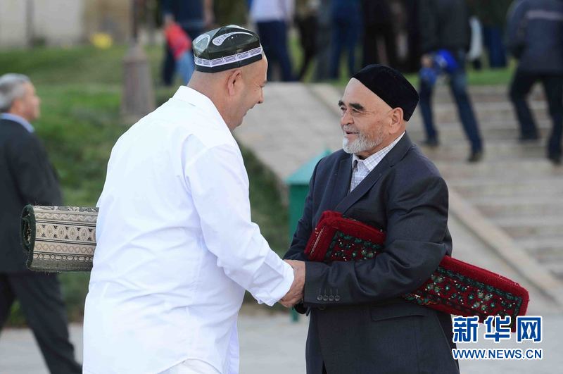 9月24日,在烏茲別克斯坦首都塔什干哈斯特·伊瑪姆建筑群清真寺廣場,人們參加古爾邦節(jié)禮拜。當天,烏茲別克斯坦各地慶祝伊斯蘭教傳統(tǒng)節(jié)日古爾邦節(jié)?!肮艩柊罟?jié)”亦稱“宰牲節(jié)”,是伊斯蘭教三大節(jié)日之一。 新華社記者沙達提 攝