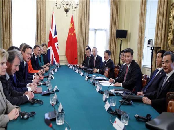 習近平說:“中英關(guān)系和中歐關(guān)系發(fā)展面臨繼往開來的重要機遇。英國是歐盟重要成員國,中英關(guān)系同中歐關(guān)系相輔相成?!?/p>