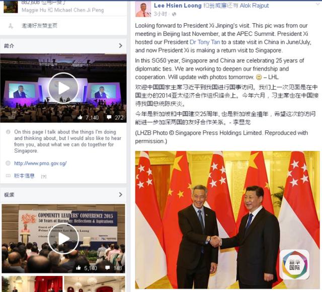 新華網(wǎng)北京11月6日電 國(guó)家主席習(xí)近平到訪新加坡的幾個(gè)小時(shí)前,新加坡總理李顯龍?jiān)谧约旱哪槙黜?yè)上表示,歡迎習(xí)主席到新加坡進(jìn)行國(guó)事訪問(wèn)。