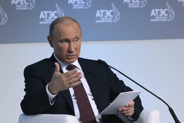 2012年9月7日,俄羅斯總統(tǒng)普京在APEC工商領(lǐng)導(dǎo)人峰會上講話。