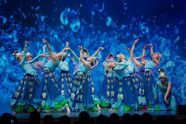 2015年3月26日,中國-中東歐國家旅游合作促進年啟動儀式在布達佩斯斯舉行 。圖為中國舞蹈演員在啟動儀式上表演大型歌舞《多彩貴州風》。(新華社發(fā))