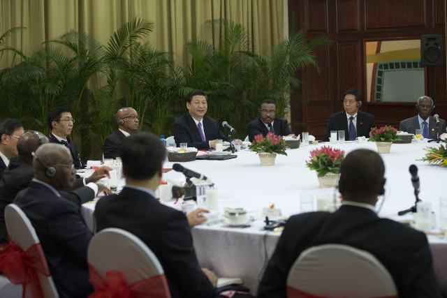 2013年3月28日,習近平在南非德班同非洲國家領導人就中非關系、非洲形勢深入交換意見,闡述政策主張。習近平指出: