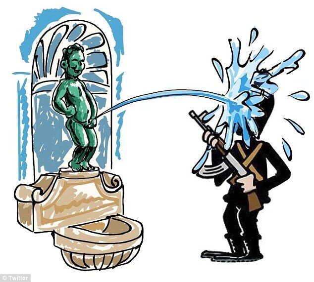 漫畫中,可愛的“撒尿小童”向代表恐怖主義的槍械和持槍者暢快地撒尿。也有網(wǎng)友將法國和比利時(shí)的國旗拼湊在一起,表達(dá)了同為恐襲受害國的法國與比利時(shí)站在一起,共同面對(duì)恐怖組織。