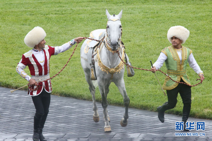 當日,土庫曼斯坦為慶祝阿哈爾捷金馬(中國稱汗血馬)節(jié)在總統(tǒng)馬場舉行汗血馬選美大賽。一匹名為“別格汗”的8歲鼠灰色馬受到評委們的青睞,贏得2016年度“最美汗血馬”稱號。新華網(wǎng)記者 盧敬利 攝
