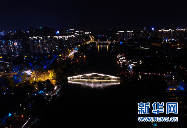航拍杭州拱宸橋附近的的京杭大運河夜景(5月3日攝)。杭州自古多橋。斷橋、長橋、錢塘江大橋、復(fù)興大橋……古樸文雅輝映現(xiàn)代氣派,透出這座城市融匯古今、靈動開放的底蘊。舉世矚目的二十國集團(G20)領(lǐng)導(dǎo)人第十一次峰會將在這里舉行。有趣的是,這次峰會的會標,也是一座橋——一座由20個成員搭起的“橋”。這會是一座怎樣的橋?它能否緩解當前全球經(jīng)貿(mào)河道上的種種淤塞?它能否跨越發(fā)達國家和發(fā)展中國家之間的溝溝壑壑? 全球在期待,中國在行動。新華社記者黃宗治攝