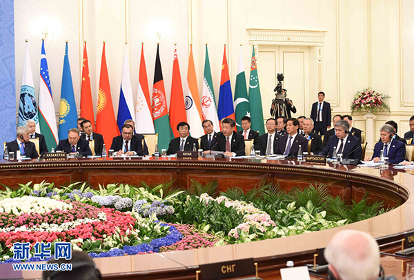 第五,堅持開放包容,壯大本組織合作隊伍。各方要以這次峰會簽署印度、巴基斯坦加入組織義務(wù)的備忘錄為契機,共同完善組織機制建設(shè),擴展和深化各領(lǐng)域合作。