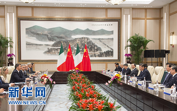 倫齊表示,意中兩大古老文明的友誼源遠流長。意方對兩國關系日益緊密感到高興,希望深化同中方經(jīng)貿(mào)、金融、港口建設、文化、醫(yī)療等領域合作,愿參加“一帶一路”建設。意方預祝二十國集團領導人杭州峰會圓滿成功。