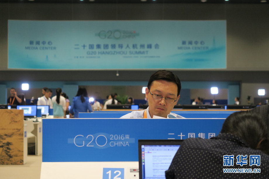 二十國集團領(lǐng)導(dǎo)人第十一次峰會9月4日至5日在浙江杭州舉行。峰會新聞中心一派繁忙景象,境內(nèi)外各路媒體記者使出“洪荒之力”,實時報道峰會動態(tài)。新華網(wǎng)記者 陳競超 攝