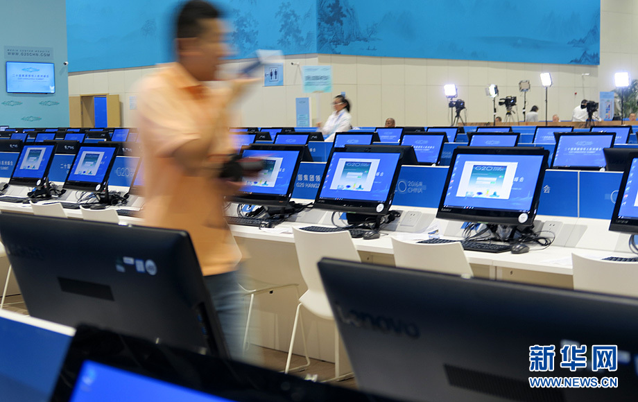 二十國集團(tuán)領(lǐng)導(dǎo)人第十一次峰會9月4日至5日在浙江杭州舉行。峰會新聞中心一派繁忙景象,境內(nèi)外各路媒體記者使出“洪荒之力”,實時報道峰會動態(tài)。新華網(wǎng)記者 陳競超 攝