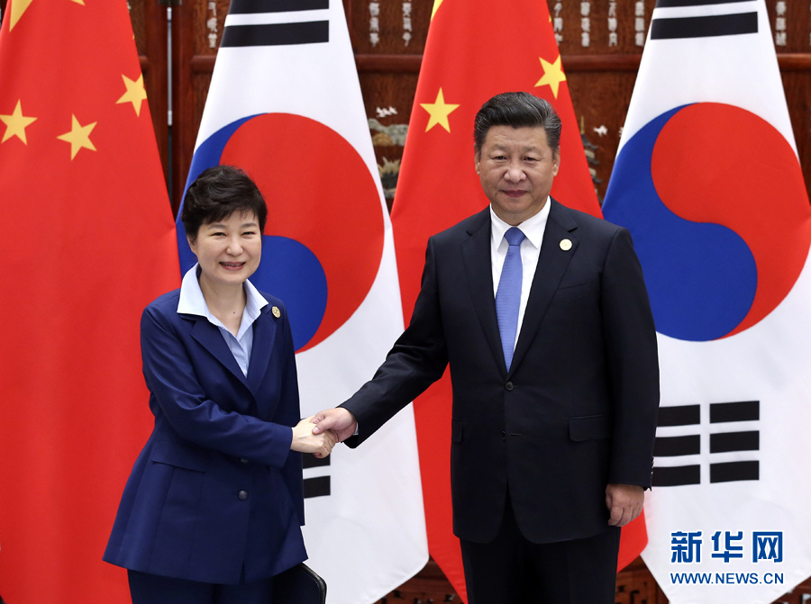 9月5日,國家主席習近平在杭州會見來華出席二十國集團領(lǐng)導人峰會的韓國總統(tǒng)樸槿惠。 新華社記者龐興雷攝
