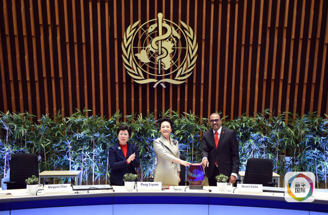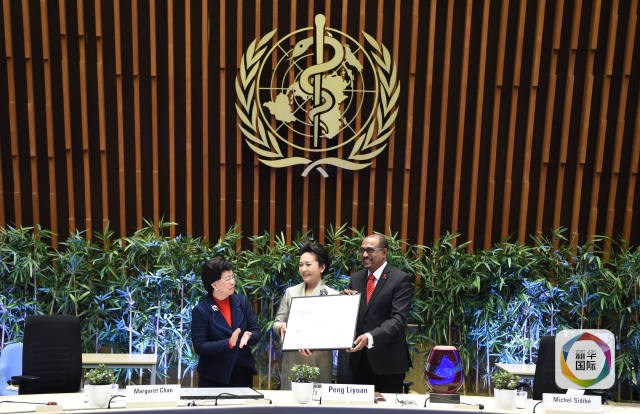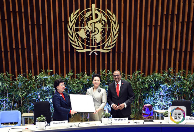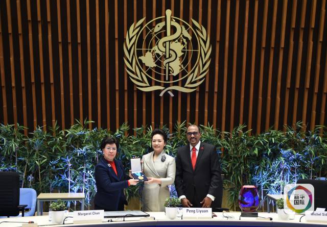 1月18日,國家主席習(xí)近平夫人、世界衛(wèi)生組織結(jié)核病和艾滋病防治親善大使彭麗媛應(yīng)世界衛(wèi)生組織總干事陳馮富珍和聯(lián)合國艾滋病規(guī)劃署執(zhí)行主任西迪貝邀請,在瑞士日內(nèi)瓦出席為她舉行的親善大使任期續(xù)延暨頒獎儀式。這是世界衛(wèi)生組織總干事陳馮富珍向彭麗媛頒發(fā)世衛(wèi)組織榮譽勛章。(新華社記者謝環(huán)馳攝)