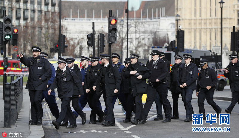 當(dāng)?shù)貢r(shí)間2017年3月22日,英國(guó)倫敦,英國(guó)威斯敏斯特議會(huì)大廈附近發(fā)生襲擊事件,威斯敏斯特橋上有車(chē)輛沖撞行人;另外有持刀歹徒攻擊議會(huì)大廈執(zhí)勤警察后被擊斃,報(bào)道稱(chēng)多人受傷。襲擊發(fā)生后,議會(huì)大廈臨時(shí)關(guān)閉,英國(guó)議會(huì)下院的會(huì)議暫停。倫敦警方目前暫時(shí)將此事作為恐怖事件處理。據(jù)外媒報(bào)道,英國(guó)警方封閉了倫敦議會(huì)大廈周邊的街道。圖片來(lái)源:東方IC