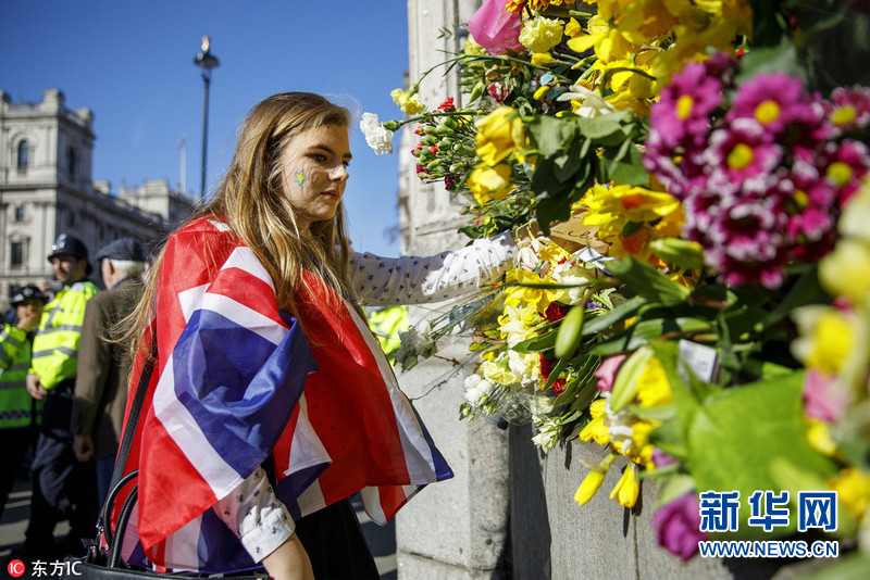 英國民眾在議會(huì)外擺放鮮花 哀悼恐襲受害者(組圖)