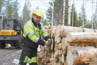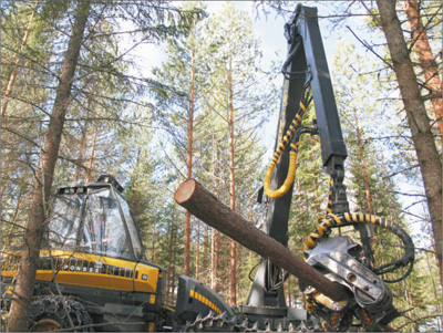 從芬蘭首都赫爾辛基驅車往北一個多小時,我們的四輪驅動汽車駛上一條小路。路上積雪越來越多,兩旁的森林也越來越密。循著轟鳴聲,我們看到一臺伐木機正在作業(yè):一只碩大的機械手攥住云杉的底部,量直徑、切樹樁、去雜枝、測長度、斷木頭,幾秒鐘的工夫,一氣呵成。