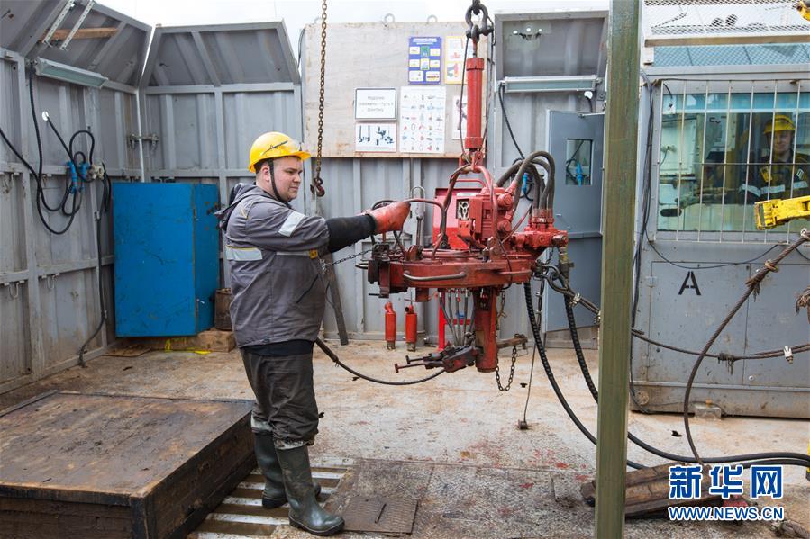6月2日,在俄羅斯伊熱夫斯克,工人在UDM項(xiàng)目鉆井現(xiàn)場(chǎng)作業(yè)。新華社記者白雪騏攝