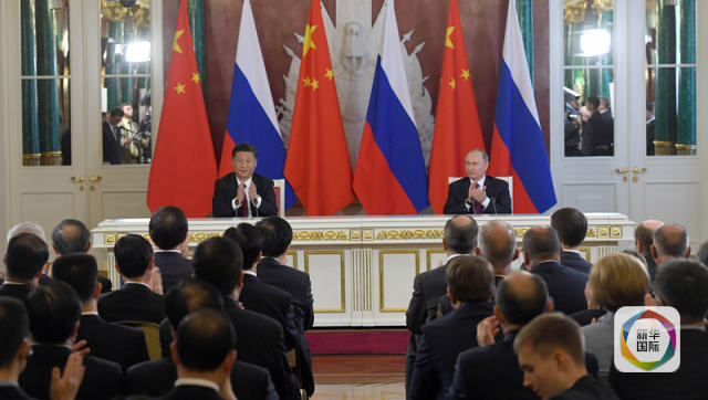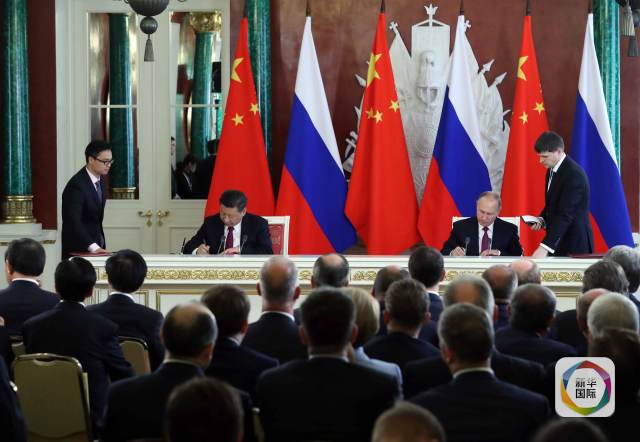 7月4日,國(guó)家主席習(xí)近平在莫斯科克里姆林宮同俄羅斯總統(tǒng)普京舉行會(huì)談。這是會(huì)談后,兩國(guó)元首共同出席簽字儀式。新華社記者 謝環(huán)馳 攝