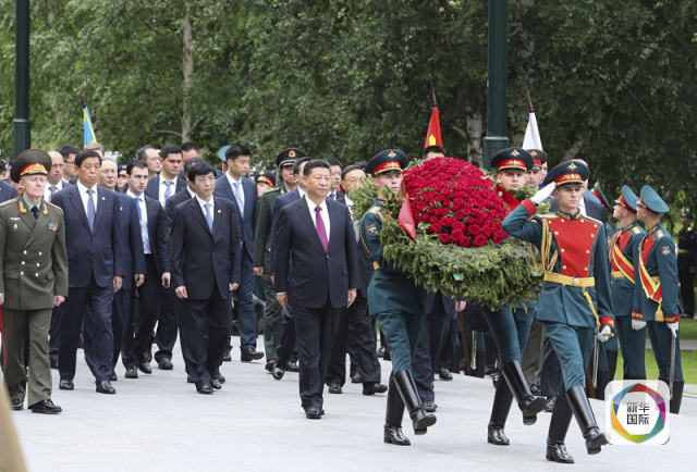 7月4日,國(guó)家主席習(xí)近平在莫斯科向俄羅斯無(wú)名烈士墓敬獻(xiàn)花圈。新華社記者 謝環(huán)馳 攝