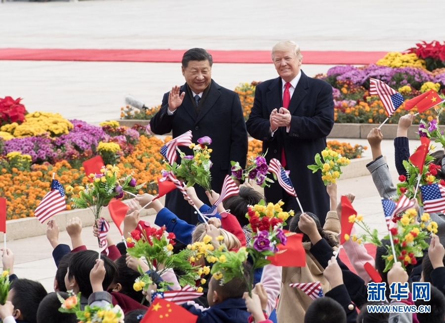 11月9日,國(guó)家主席習(xí)近平在北京人民大會(huì)堂東門(mén)外廣場(chǎng)舉行歡迎儀式,歡迎美利堅(jiān)合眾國(guó)總統(tǒng)唐納德·特朗普對(duì)中國(guó)進(jìn)行國(guó)事訪問(wèn)。 新華社記者李學(xué)仁 攝