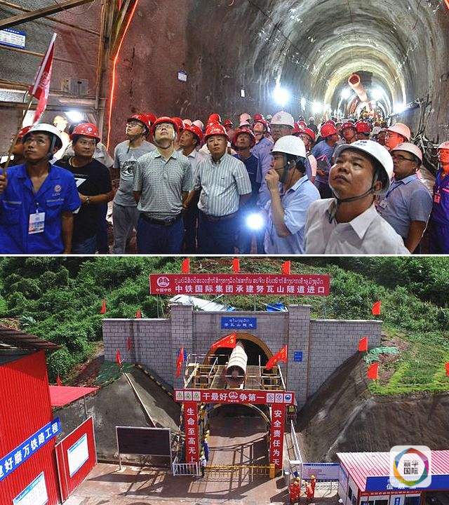 接片:上圖,10月12日,老中鐵路有限公司組織由200多人組成的大型觀摩團(tuán),觀摩中老鐵路努瓦山隧道施工;下圖,老撾烏多姆賽省孟賽縣中老鐵路努瓦山隧道外景。(新華社發(fā))