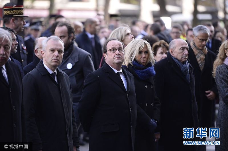 當(dāng)?shù)貢r間2017年11月13日,法國巴黎,法國恐襲2周年,法國舉行紀(jì)念儀式紀(jì)念遇難者。法國總統(tǒng)馬克龍偕夫人布麗吉特及前總統(tǒng)奧朗德等人出席紀(jì)念儀式。(圖片來源:視覺中國)