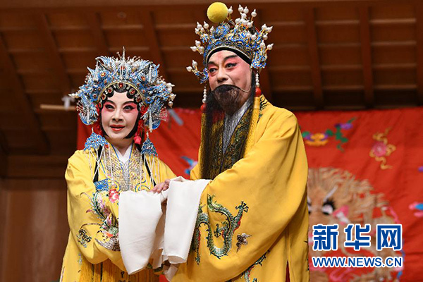 12月20日,在日本東京國立能樂堂,中國著名昆曲表演藝術(shù)家蔡正仁(右)和張靜嫻表演昆曲《長生殿》。新華社記者 姜俏梅 攝