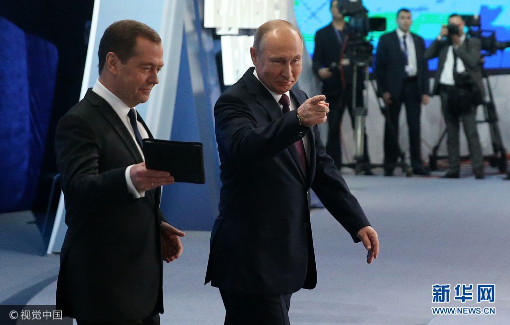 當(dāng)?shù)貢r(shí)間2017年12月23日,俄羅斯莫斯科,俄羅斯總統(tǒng)普京出席第17次統(tǒng)一俄羅斯黨大會(huì)。(圖片來源:視覺中國(guó))
