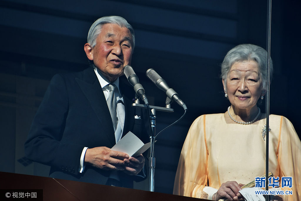當(dāng)?shù)貢r(shí)間2017年12月23日,日本東京,日本明仁天皇慶祝84歲生日,在皇宮的陽(yáng)臺(tái)上向祝福者揮手致意。(圖片來(lái)源:視覺(jué)中國(guó))