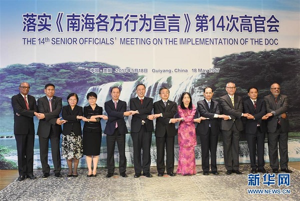 5月18日,與會代表在出席落實《南海各方行為宣言》第14次高官會前合影留念。5月17日至18日,中國與東盟國家在貴州省貴陽市舉行落實《南海各方行為宣言》第14次高官會和第21次聯(lián)合工作組會。新華社記者 劉續(xù)攝