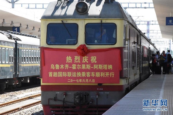 6月8日,旅客們開始登上開往哈薩克斯坦阿斯塔納的9001次國際旅客列車。當日,隨著開往哈薩克斯坦阿斯塔納的9001次國際旅客列車駛出站臺,新疆霍爾果斯至阿斯塔納客運鐵路正式投入運行。這標志著繼新疆阿拉山口鐵路口岸之后,中哈兩國開行又一條新的鐵路客運通道。新華社記者 張曉龍 攝