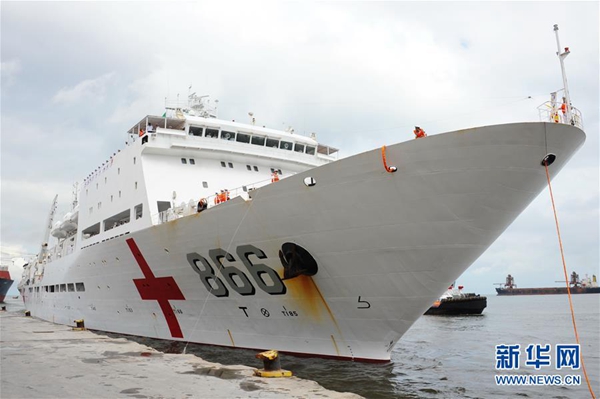9月19日,中國海軍和平方舟醫(yī)院船??咳焊ダ锒馗?。執(zhí)行“和諧使命-2017”任務(wù)的中國海軍和平方舟醫(yī)院船19日在任務(wù)指揮員管柏林、政委金毅率領(lǐng)下抵達塞拉利昂弗里敦港,開始為期8天的友好訪問并提供人道主義醫(yī)療服務(wù)。這是中國海軍艦艇首次訪問塞拉利昂。新華社記者石松攝