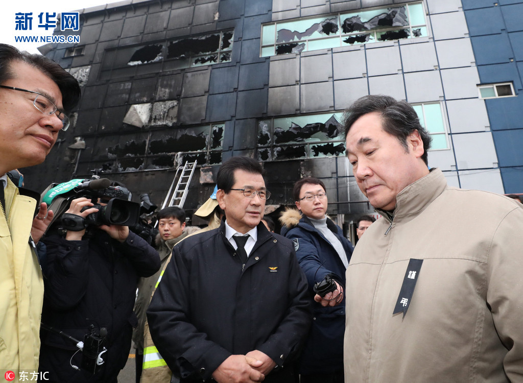 12月23日,韓國忠清北道堤川市,韓國總理李洛淵視察運(yùn)動(dòng)中心火災(zāi)現(xiàn)場(chǎng)。據(jù)報(bào)道,21日,韓國忠清北道堤川市一運(yùn)動(dòng)中心發(fā)生火災(zāi),造成29死29傷,其中20名死者在火災(zāi)發(fā)生時(shí)位于大樓2層的桑拿房內(nèi)。近日,韓媒公布了火災(zāi)現(xiàn)場(chǎng)的一組照片。照片顯示,桑拿房堆積了各種洗浴用品,應(yīng)急出口幾乎被封死。(圖片來源:東方IC)