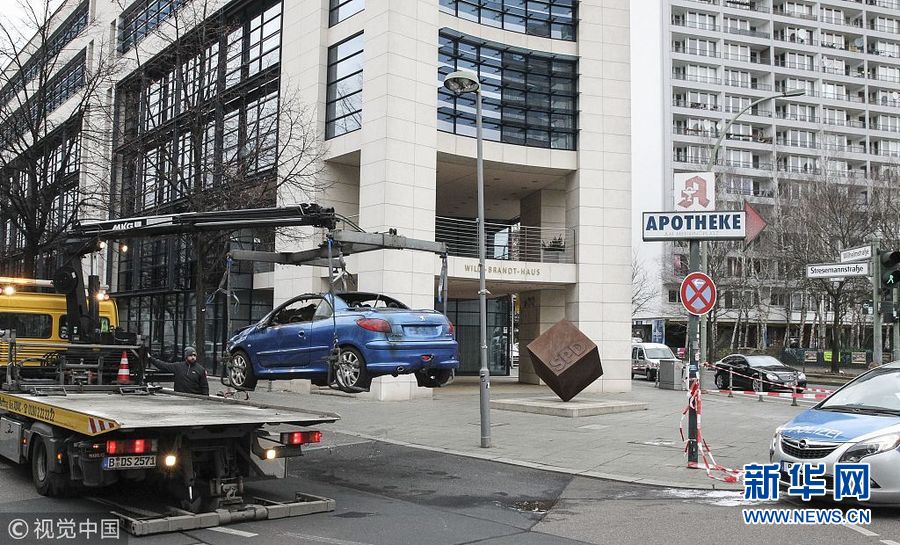 12月25日,德國(guó)柏林,一輛轎車闖入社民黨總部大樓并撞毀。(圖片來(lái)源:視覺(jué)中國(guó))