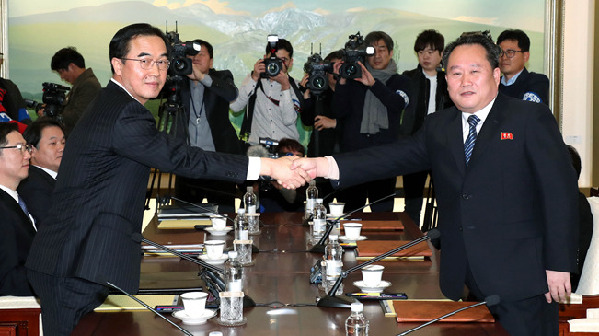 當(dāng)?shù)貢r(shí)間9日10時(shí)(北京時(shí)間9時(shí)),韓國和朝鮮代表在板門店韓方一側(cè)“和平之家”開始舉行高級(jí)別會(huì)談,討論朝方派代表團(tuán)參加平昌冬奧會(huì)、南北關(guān)系改善等議題。這是2015年12月韓朝副部長級(jí)會(huì)談之后雙方首次舉行政府間會(huì)談。