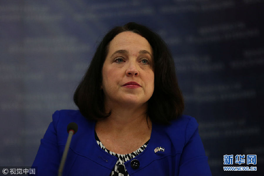 當?shù)貢r間2018年1月8日,薩爾瓦多圣薩爾瓦多,美國駐薩爾瓦多大使Jean Manes出席新聞發(fā)布會。(圖片來源:視覺中國)