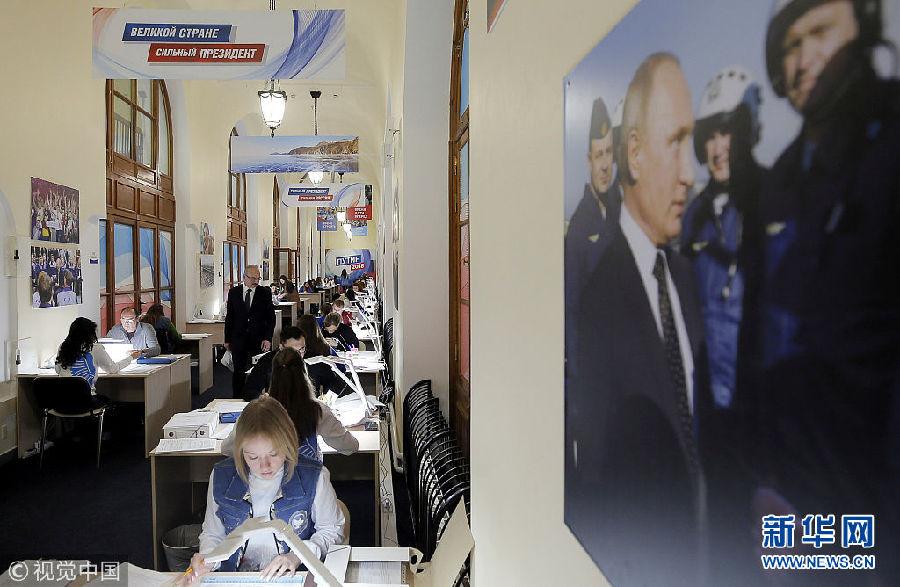 當地時間2018年1月17日,俄羅斯莫斯科,俄羅斯總統(tǒng)普京大選競選總部的志愿者核查收集到的支持普京參選的簽名。(圖片來源:視覺中國)