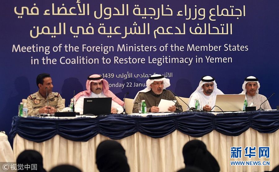 1月22日,沙特利雅得,沙特主導的打擊也門反政府武裝盟國舉行外長會議。為緩解人道危機,沙特主導的多國聯軍22日發(fā)表聲明說,將向也門提供15億美元的新援助。同時,打開一條通往中部馬里卜省的空中走廊以及17條陸上走廊,以運送援助物資;增擴也門口岸,以接收人道和基本物資。(圖片來源:視覺中國)
