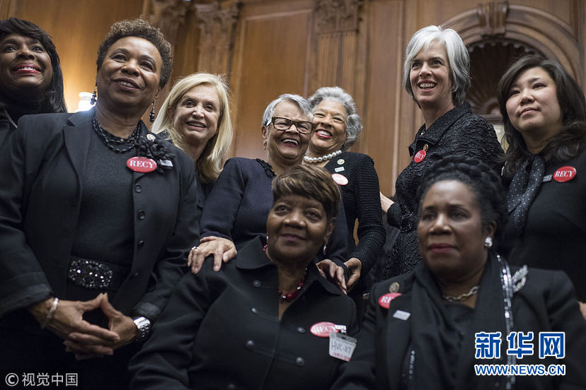 當(dāng)?shù)貢r(shí)間1月30日,美國華盛頓,民主黨國會(huì)議員和性侵幸存者一同穿黑衣現(xiàn)身國會(huì)大廈,聲援勇敢反對(duì)性騷擾和歧視的人們。眾議院民主黨人計(jì)劃穿黑衣出席特朗普的國情咨文演講,支持MeToo和TimesUp組織。 (圖片來源:視覺中國)