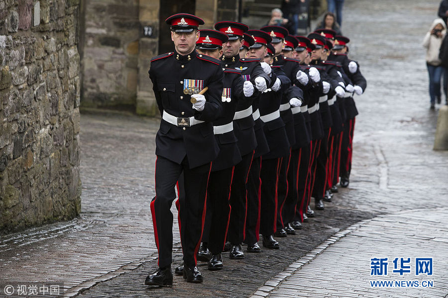 英國(guó)皇家炮兵在愛(ài)丁堡城堡鳴響21響禮炮 紀(jì)念女王登基66周年