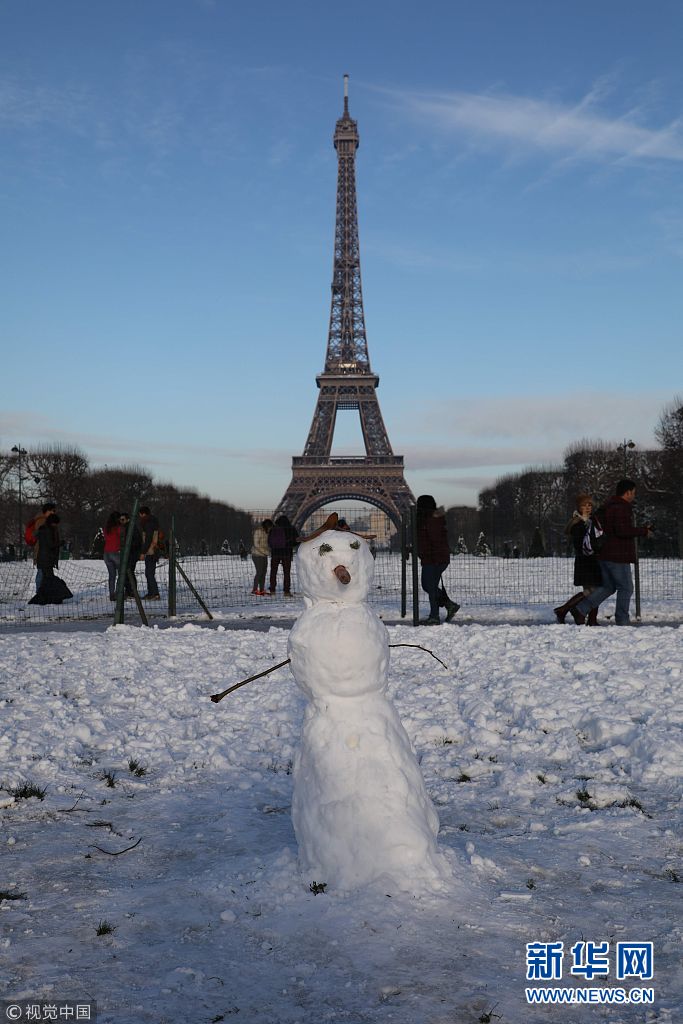 法國巴黎降下罕見大雪 埃菲爾鐵塔臨時關(guān)閉